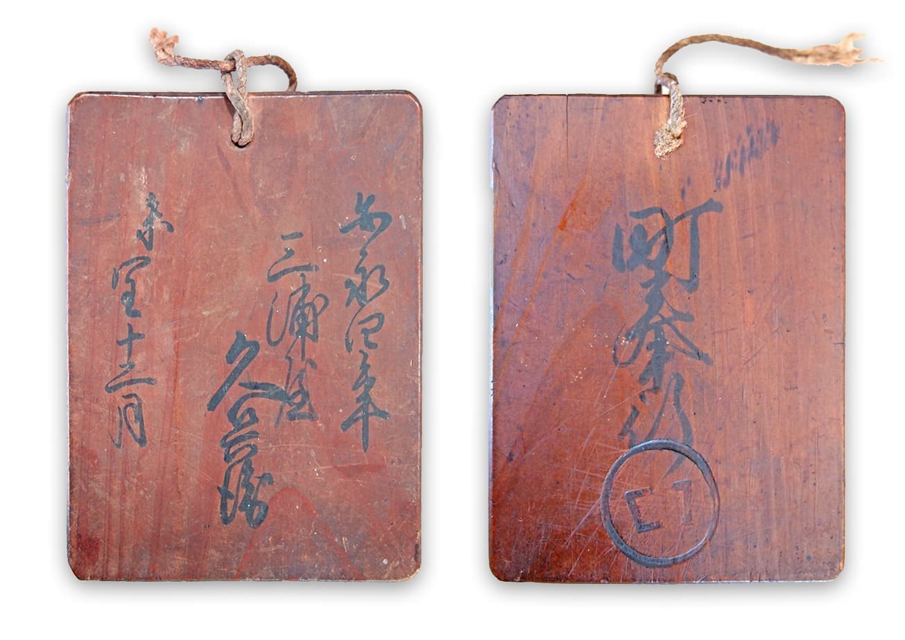 紅久には、江戸時代に紅花商をしていた当時の、「吉田城への入城手形(商業鑑札)」が代々受け継がれています。表には「町奉行」と墨で記載され、焼き印が押されています。裏には「安永四年 三浦屋久兵衛 未閏十二月」と記載されています。安永四年といえば1775年。紅久では、この年を会社の創業年としています。