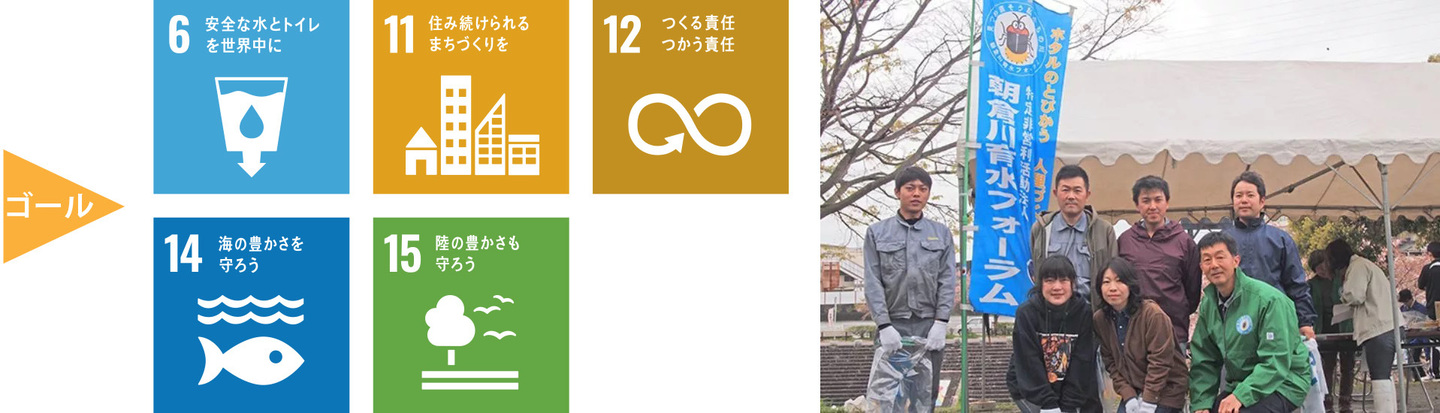 環境保護ボランティア活動にも積極的に参加しています。当社が企業会員となっている朝倉川育水フォーラムは、ホタルをシンボルとして森づくりや川づくりを行うNPO法人で、毎年、ホタルの幼虫の放流、ゴミ拾い、植樹などの活動を行っています。紅久は、朝倉川育水フォーラムの法人会員であるとともに、当社社長自身が理事として在籍し、毎年開催される530大会には社員と共に毎年参加しています。