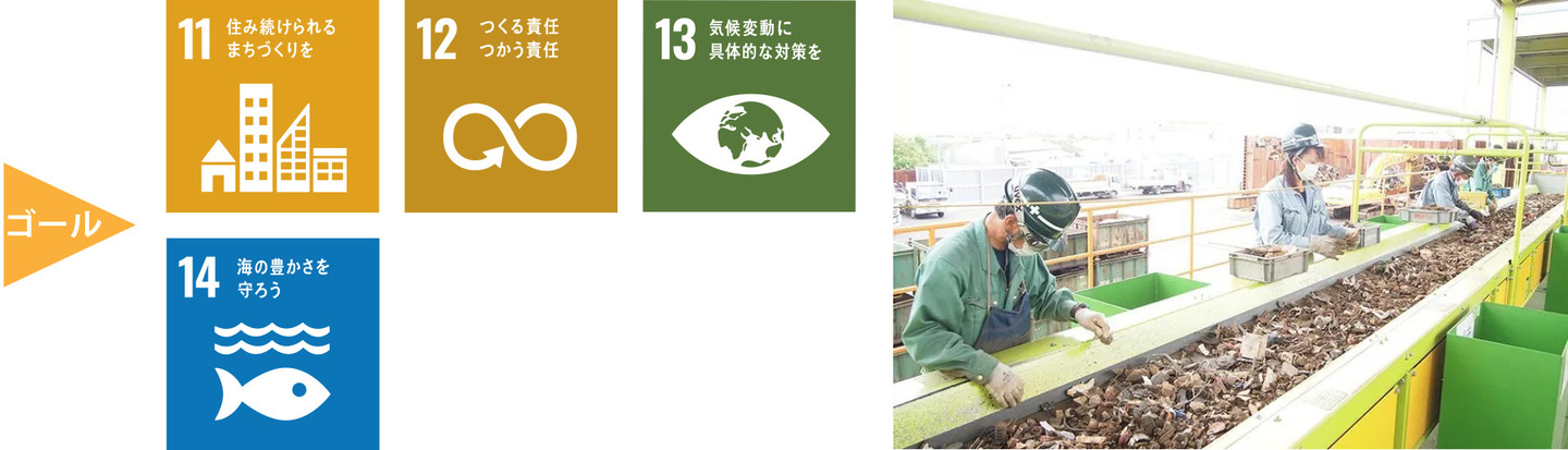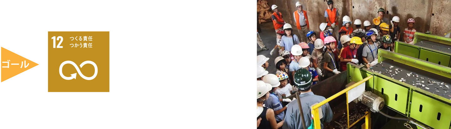 金属スクラップ及びそれに付随するプラスチック、木材、コンクリート等のリサイクル率を向上させ、廃棄物の減量とリサイクル資源の創出量増加する事により鉱山開発等天然資源掘削による自然環境の破壊とCO2を低減しています。