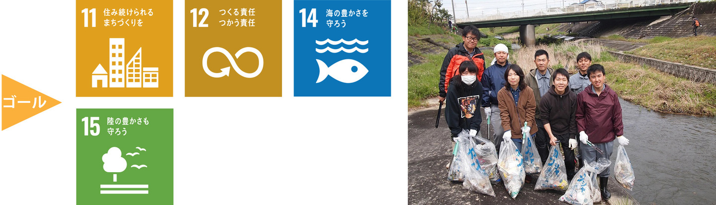 プラスチックリサイクルを向上させマテリアル化する事により、プラスチック埋め立て削減と海へのマイクロプラスチック流出を削減しています。