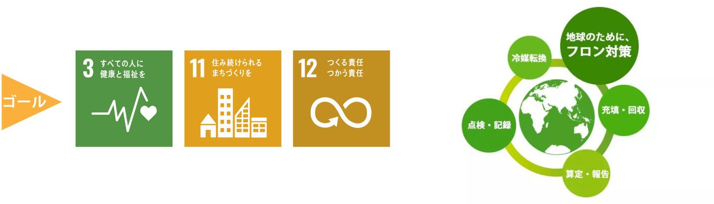 フロンガスを適切に処理することにより、オゾン層の破壊を防ぎ人々の健康を守っています。