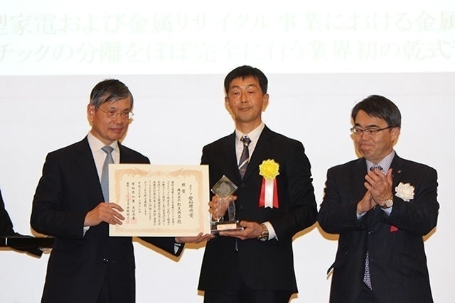 受賞対象事業の名称は「小型家電および金属リサイクル事業における金属とプラスチックの分離をほぼ完全に行う業界初の乾式ライン」です。